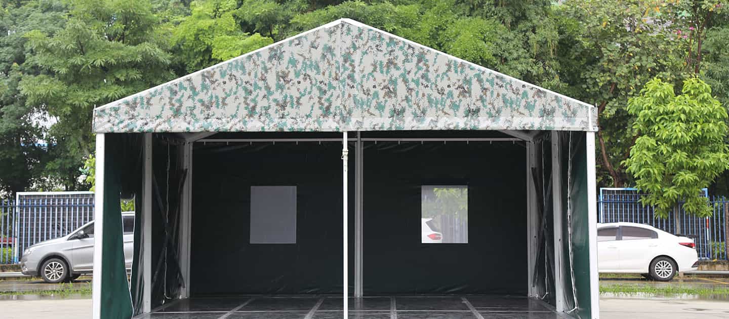 Our military tent is a sturdy and durable shelter that can be quickly deployed, specifically designed for defense, disaster relief, and field operations. It features a high-strength aluminum alloy frame and PVC fabric with excellent weather resistance, demonstrating outstanding durability. With a column-free interior design and excellent structural strength, our military grade tent can be flexibly configured as command centers, barracks, material warehouses, medical units, or mobile workspaces, meeting the needs of multi-functional tasks. Whether it is in response to natural disasters, conducting field training, or operating in temporary mission areas, our military tent can provide reliable protection and efficient support.